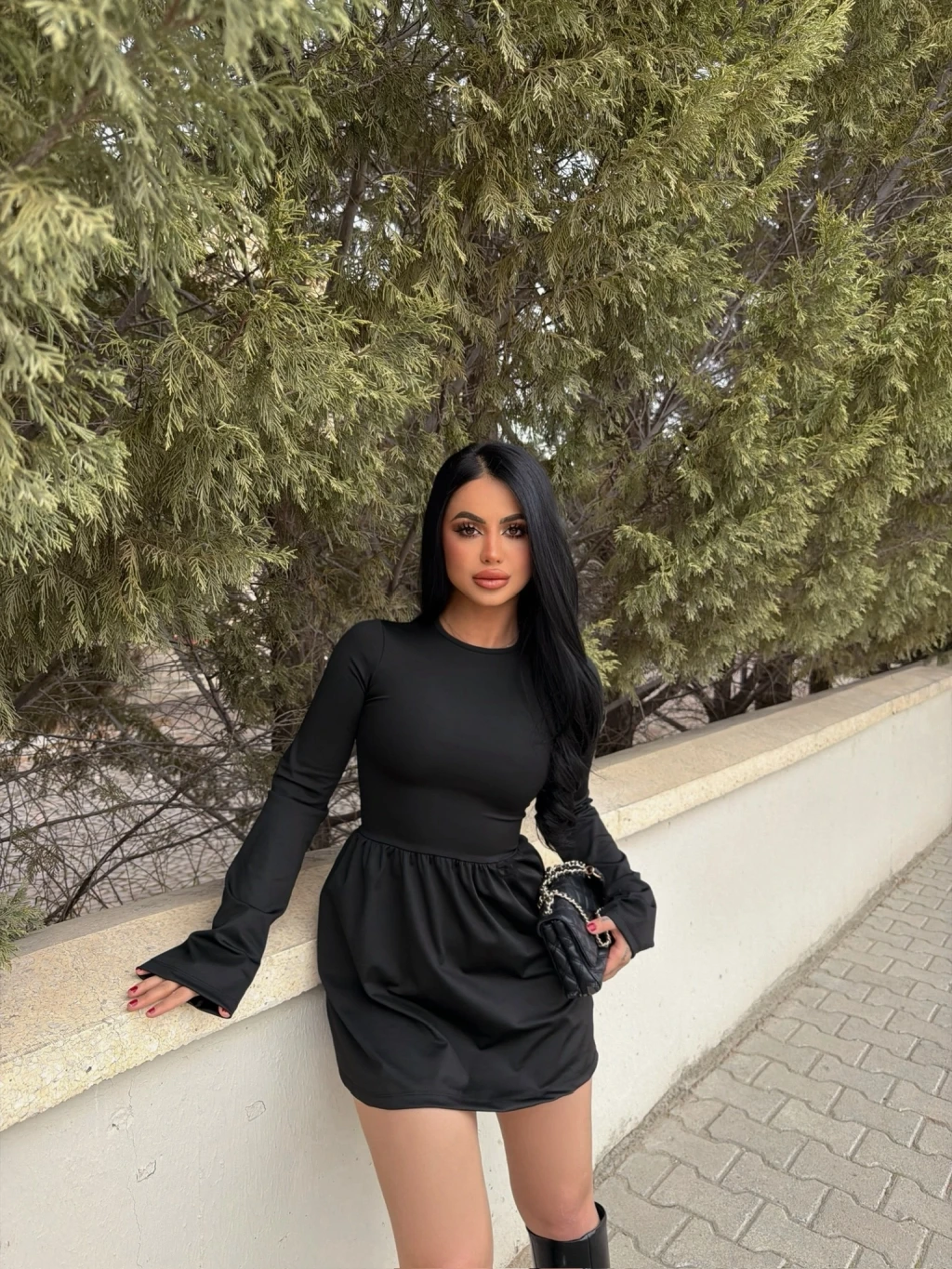 Siyah Sandy Çan Etek Elbise