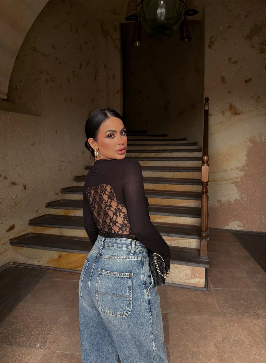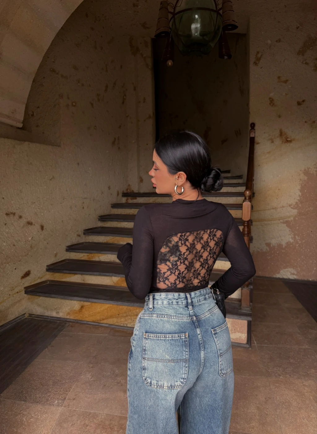 - Sırt kısmında yer alan dantel detayıyla feminen bir görünüm sağlar.