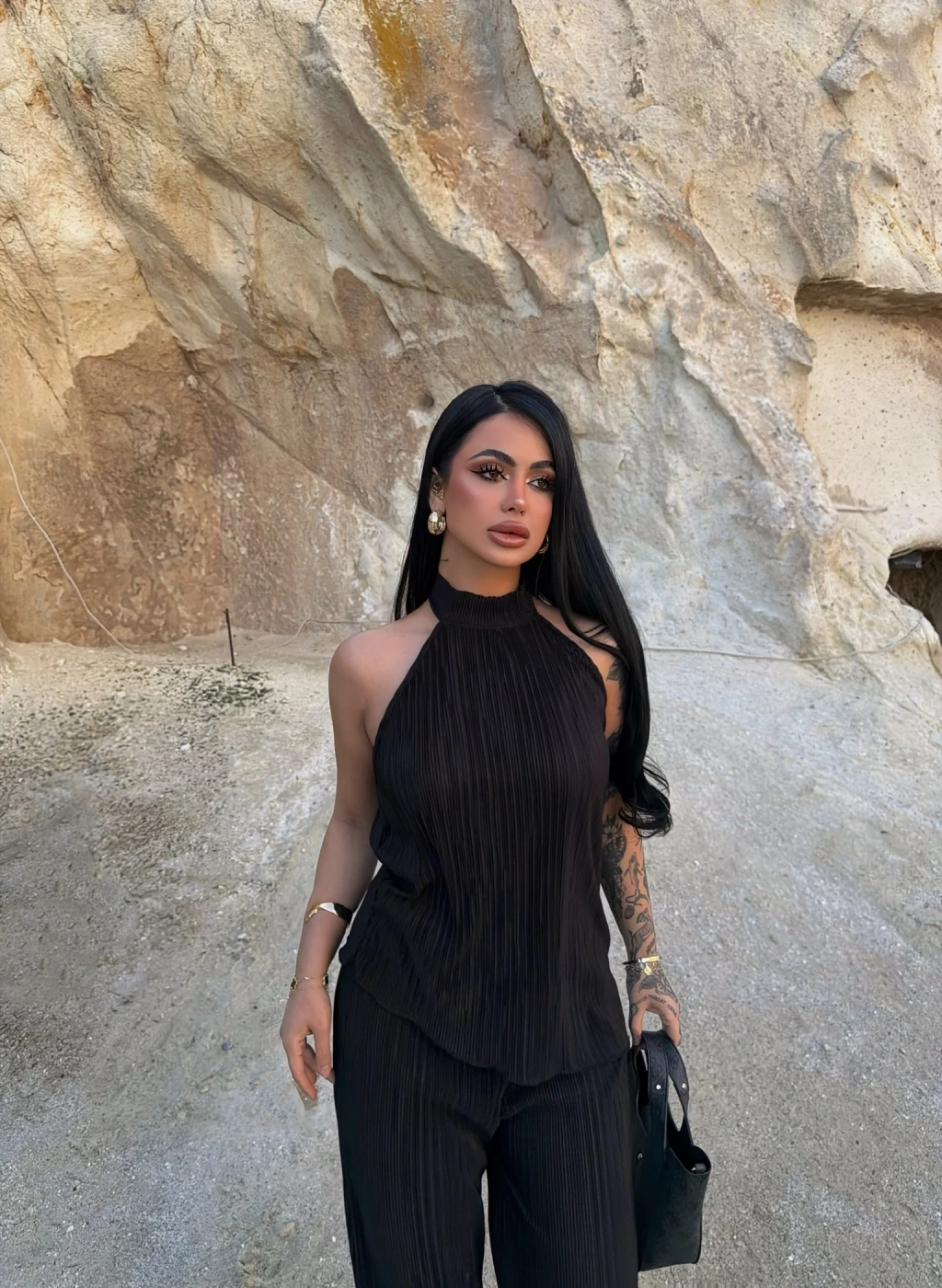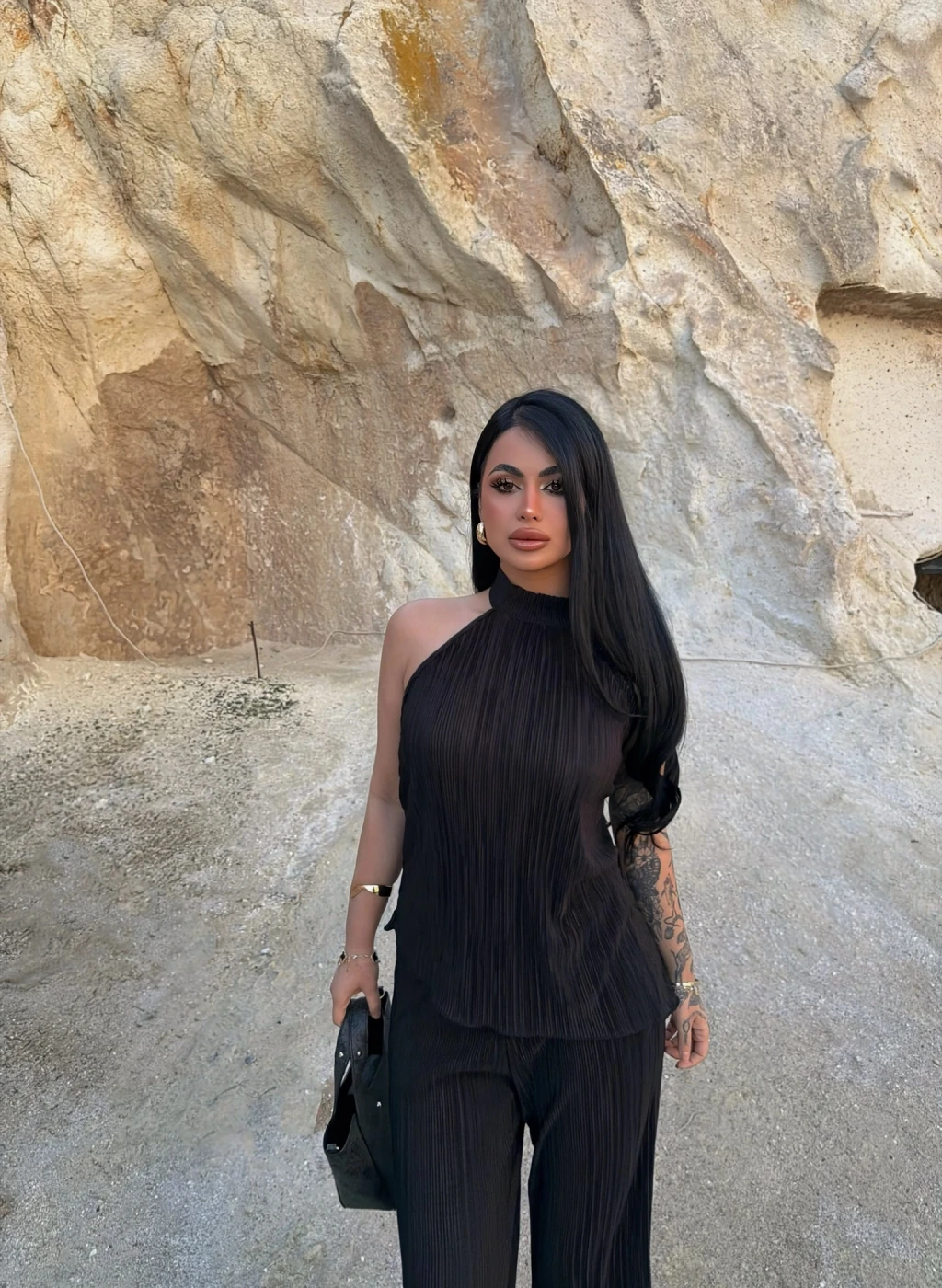 • Yüksek bel fitilli pantolonu ile vücudu saran şık bir kesime sahiptir.
