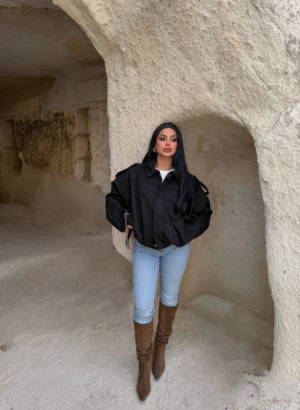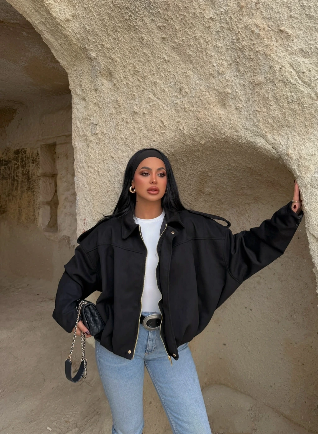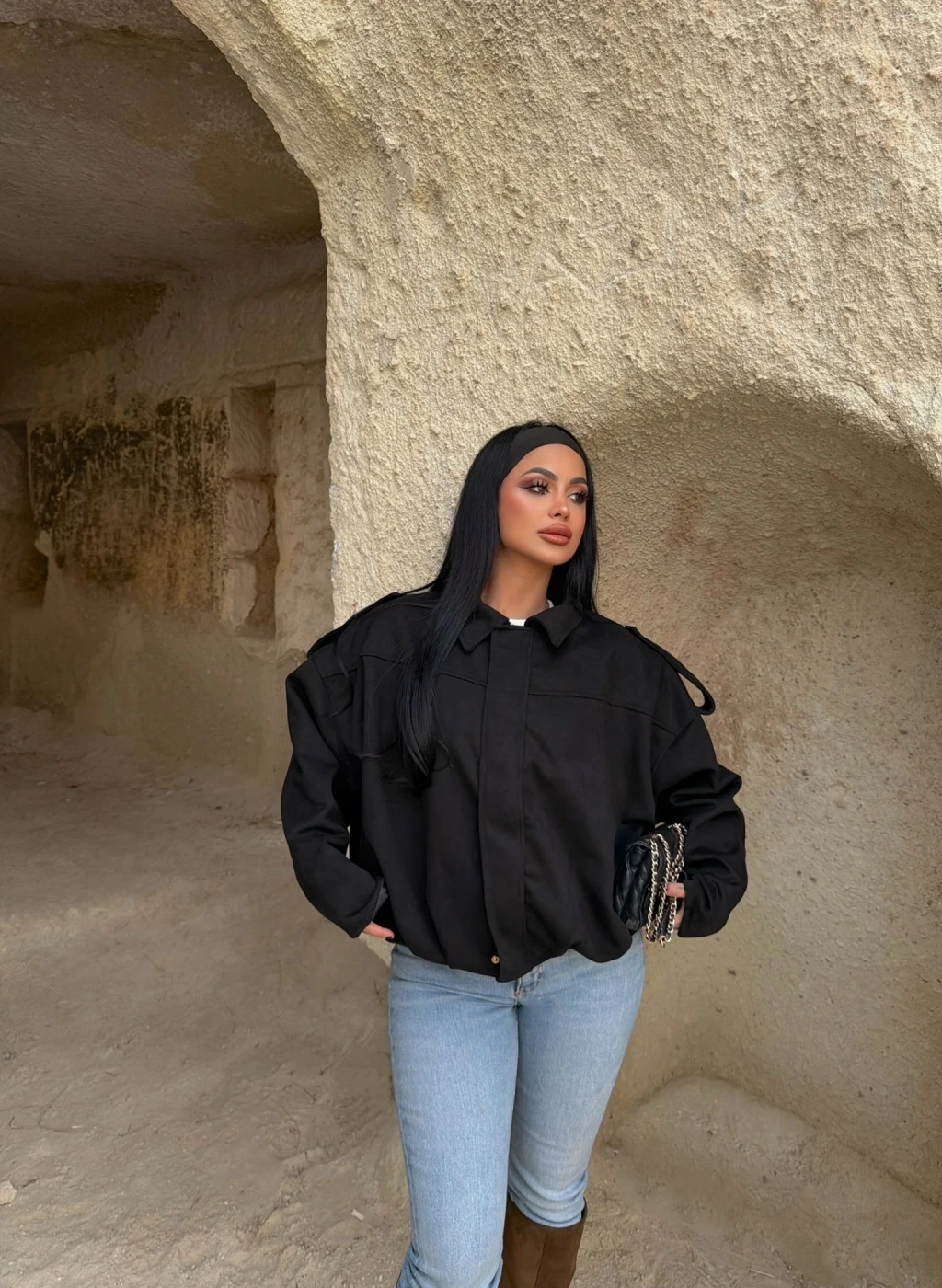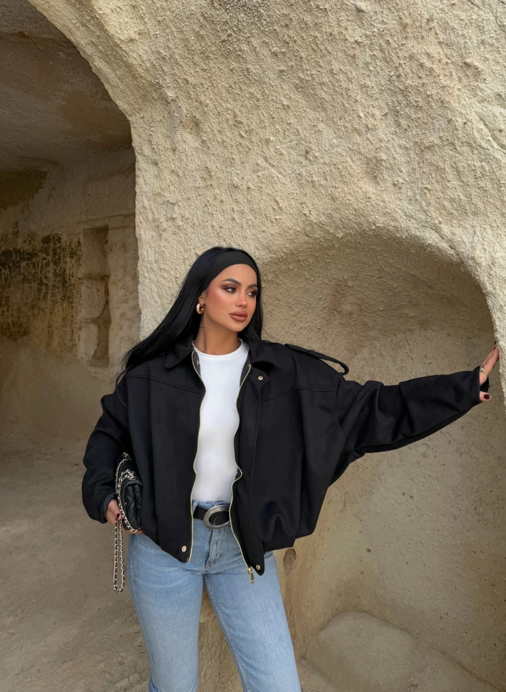 Siyah Süet Oversize Bomber Mont