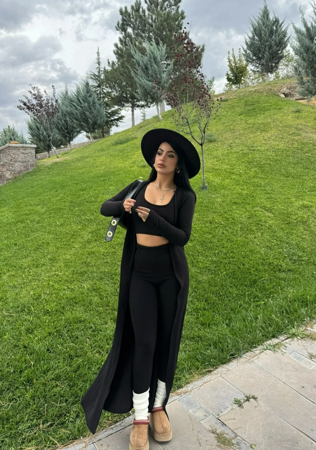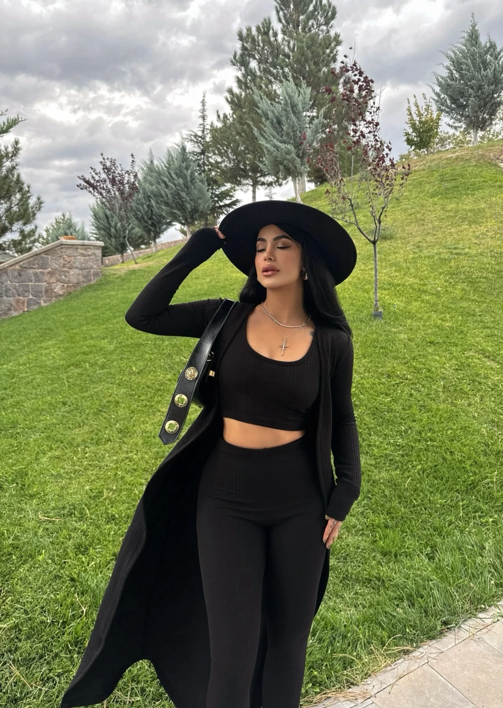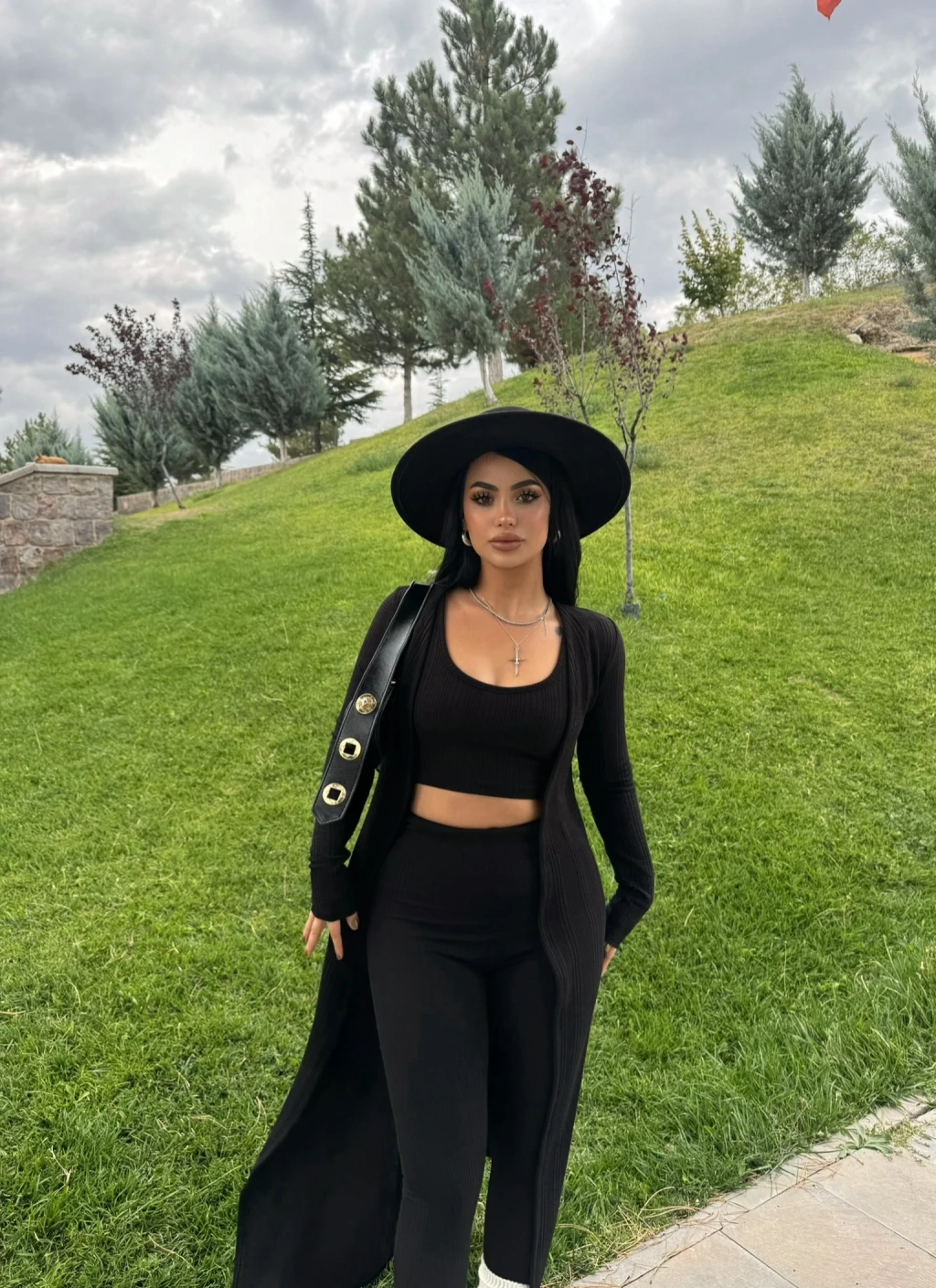 Siyah Triko Burgu Üçlü Takım
