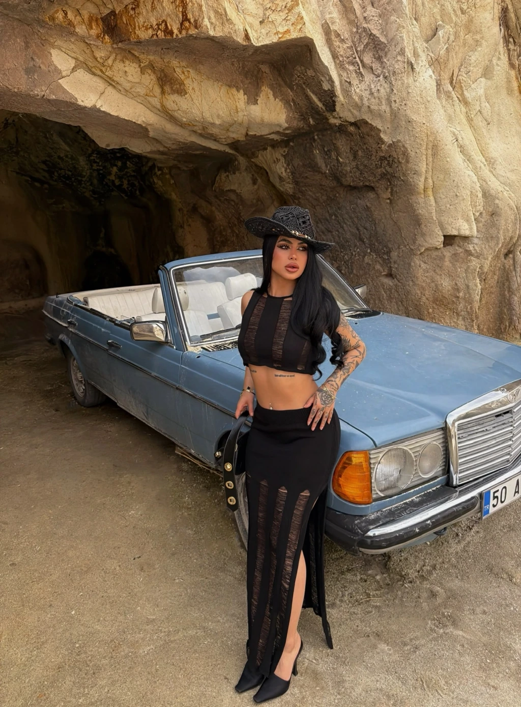 Siyah Sırt Dekolte Fitilli Takım