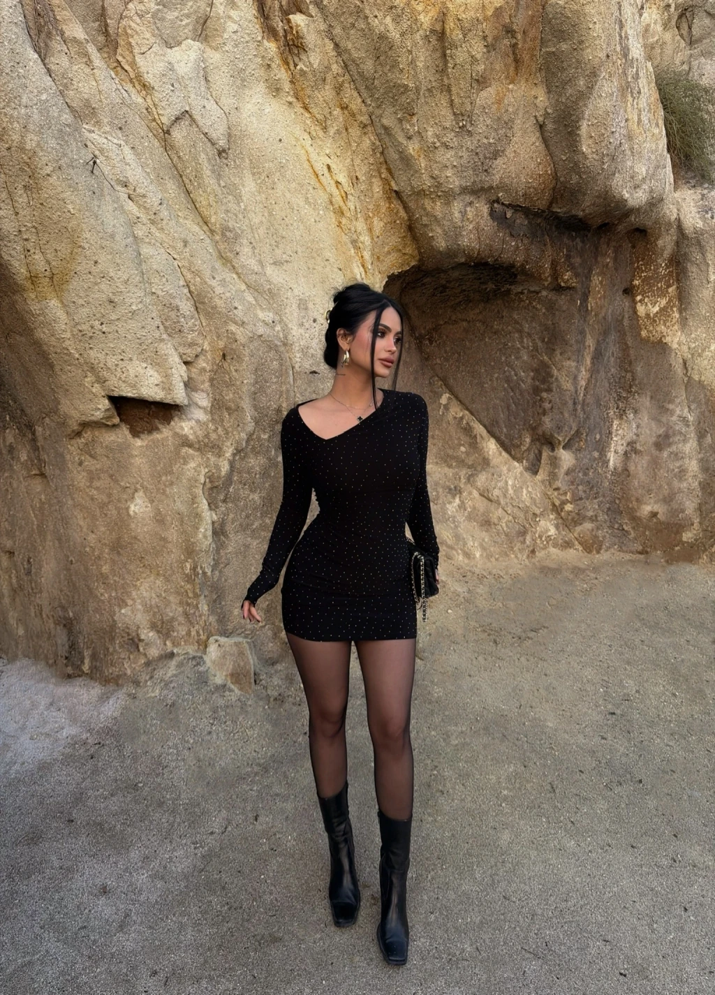 Bu asimetrik kesimli, taş detaylı elbiseyle şıklığınızı konuşturun! Kırmızı Butik'in özel tasarımı olan bu mini elbise, zarif yaka detayıyla dikkat çekiyor. İster özel davetlerde isterseniz günlük kullanımda tercih edebileceğiniz bu elbise, şıklığı ve rahatlığı bir arada sunuyor.