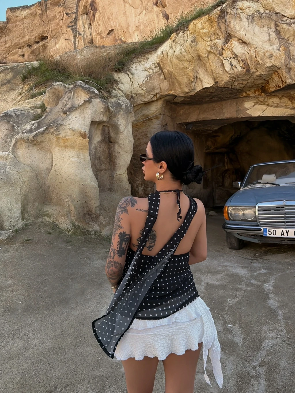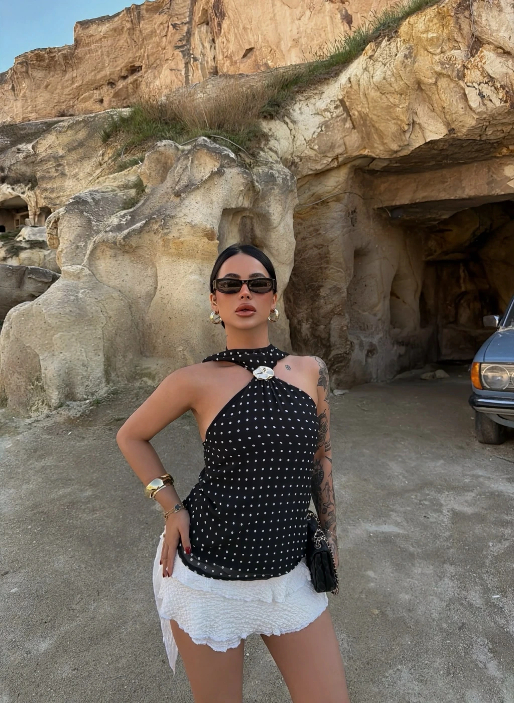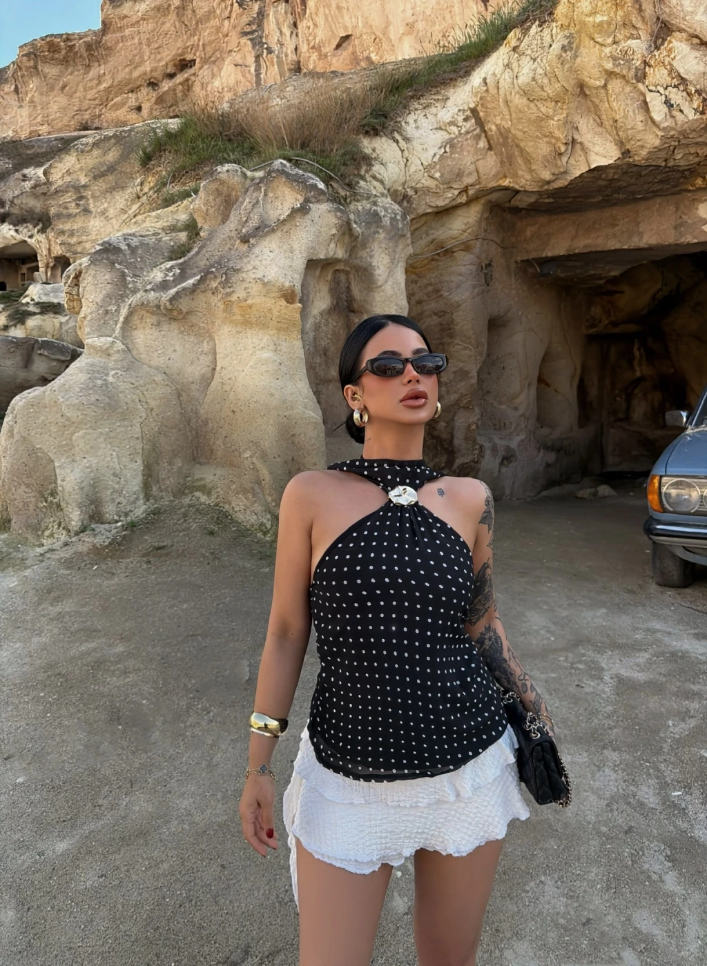 • Şık tokalı puantiye deseni