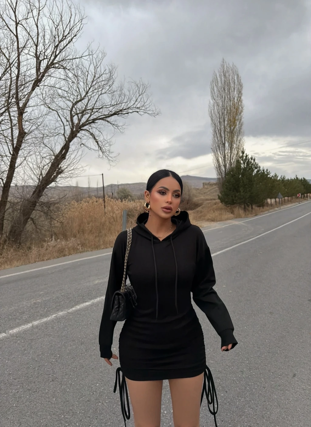 Yan Büzgülü Sweat Elbise, Kırmızı Butik'in mini elbise kategorisindeki şık ve rahat bir seçenektir.