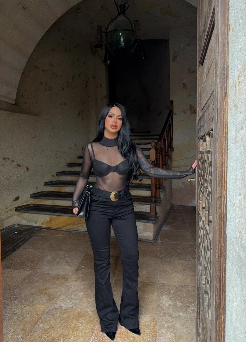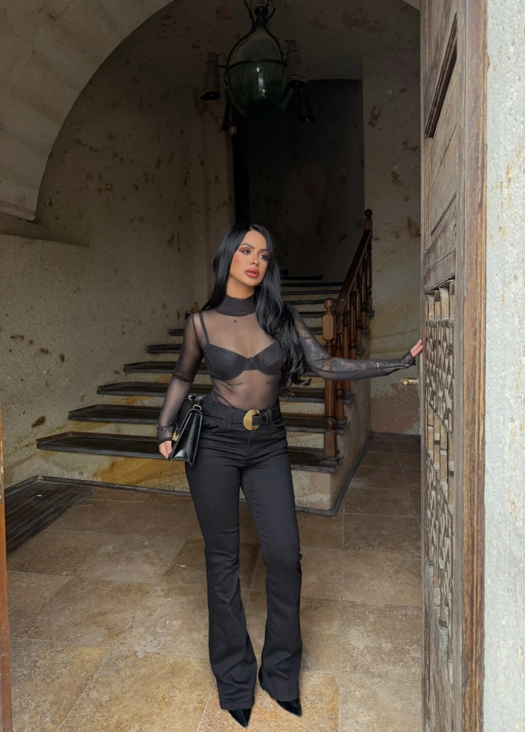 Siyah Yüksek Bel Likralı İspanyol Pantolon