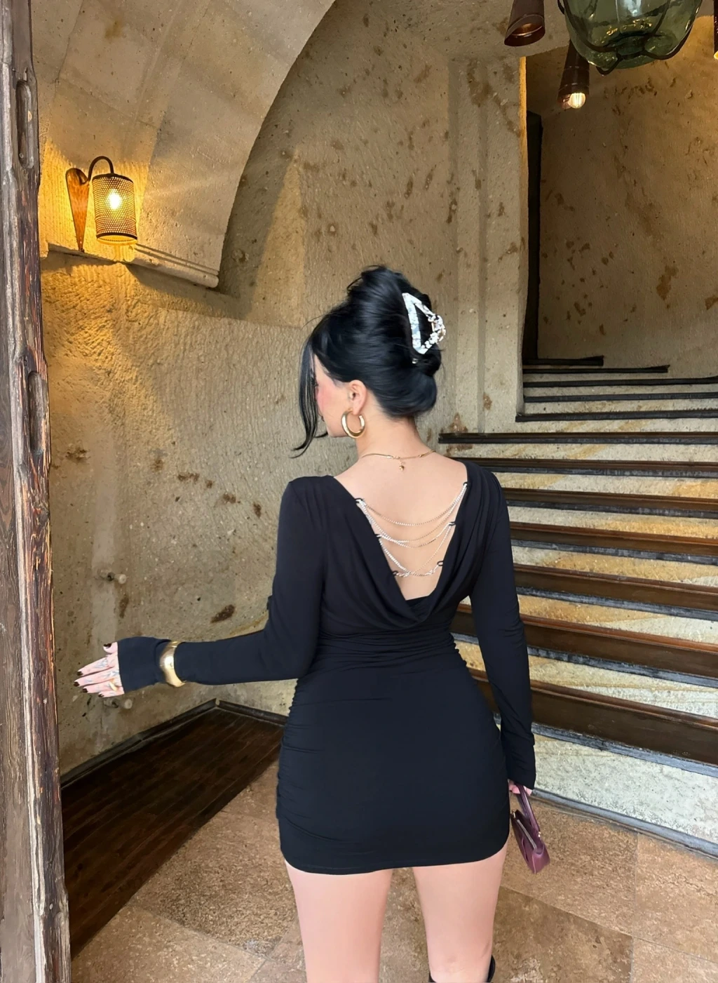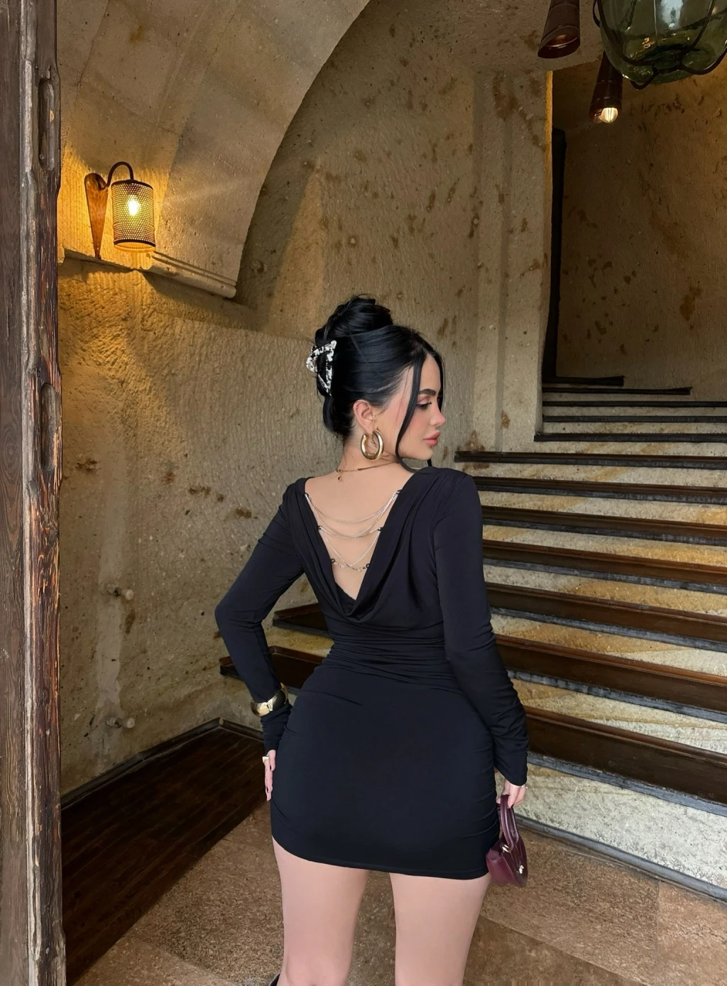 Zincirli Sırt Degaje Elbise, Kırmızı Butik'in tasarladığı şık ve cesur bir parçadır. Mini Elbise kategorisinde yer alan bu elbise, günlük kullanımdan özel davetlere kadar geniş bir kullanım alanı sunar.