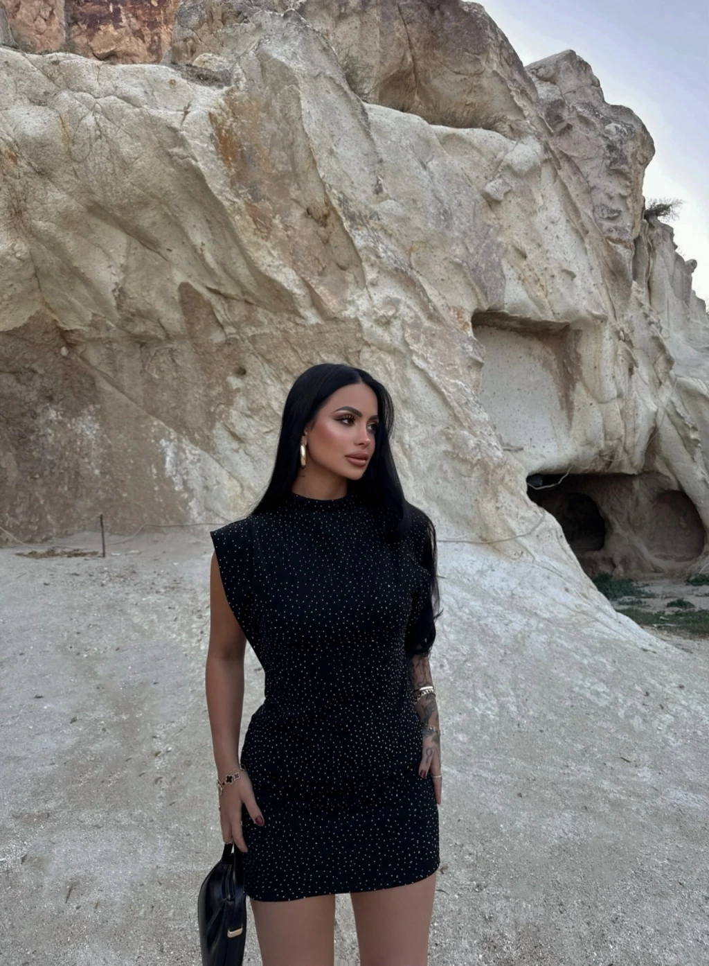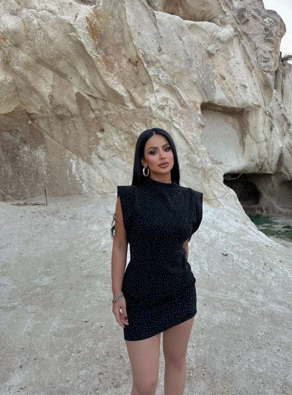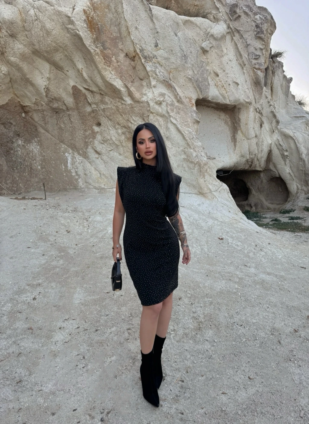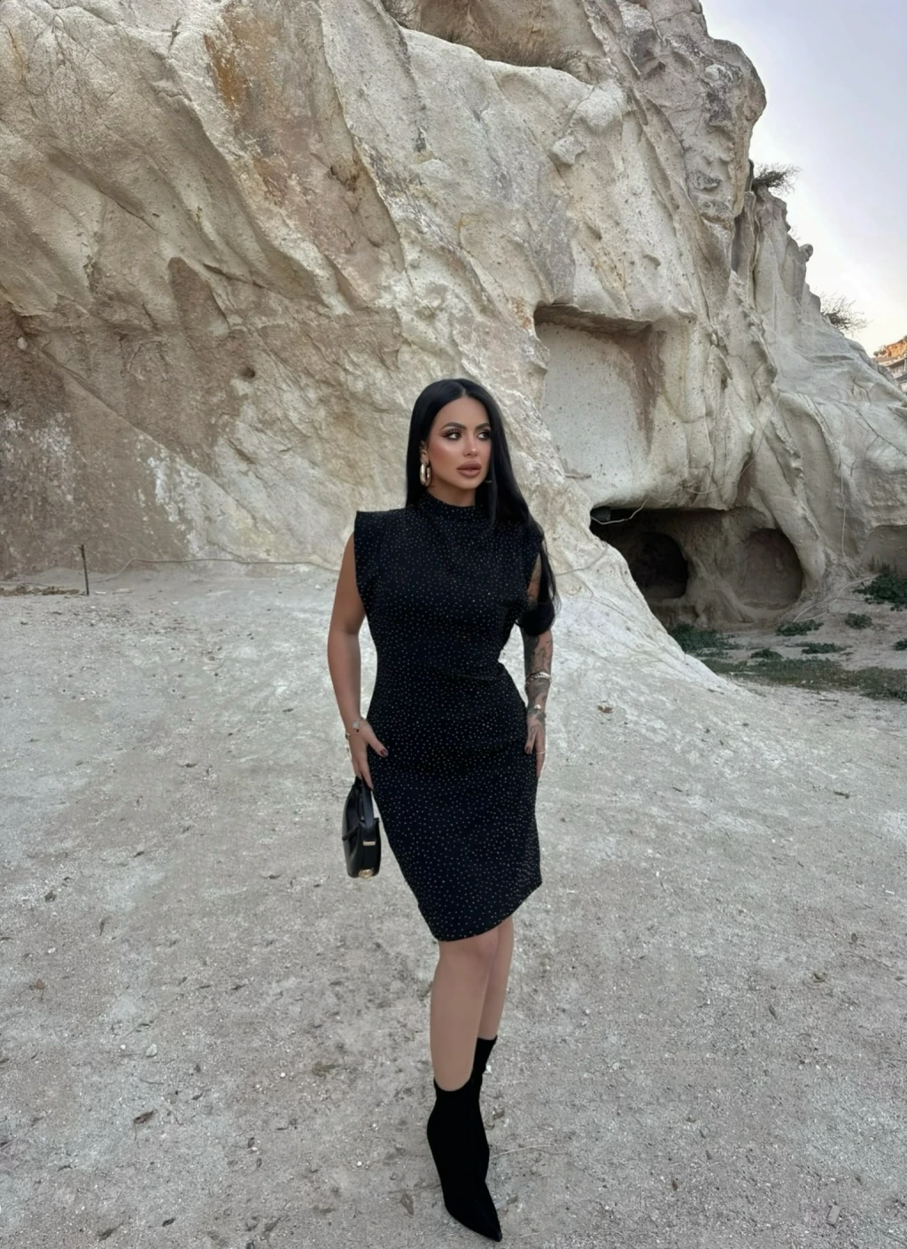Bu muhteşem Taşlı Dik Yaka Elbise ile partilerde ve davetlerde kendinizi özel hissedeceksiniz. Şıklığınızla herkesi büyüleyeceksiniz.