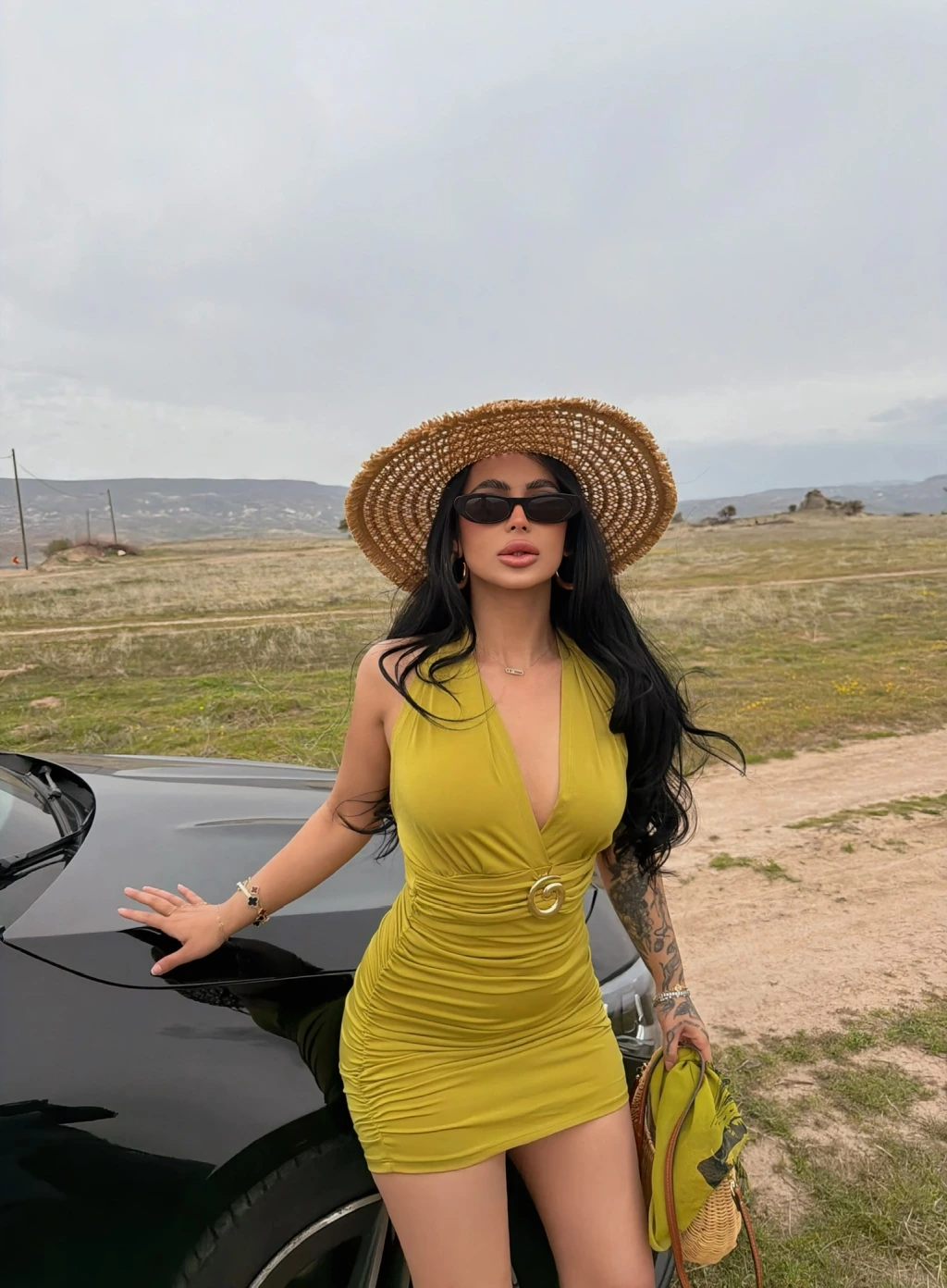 Kırmızı Butik'in şıklığı ve şıklığı bir arada sunan Boyundan Bağlamalı Tokalı Elbise, etkileyici görünümüyle dikkat çekiyor.