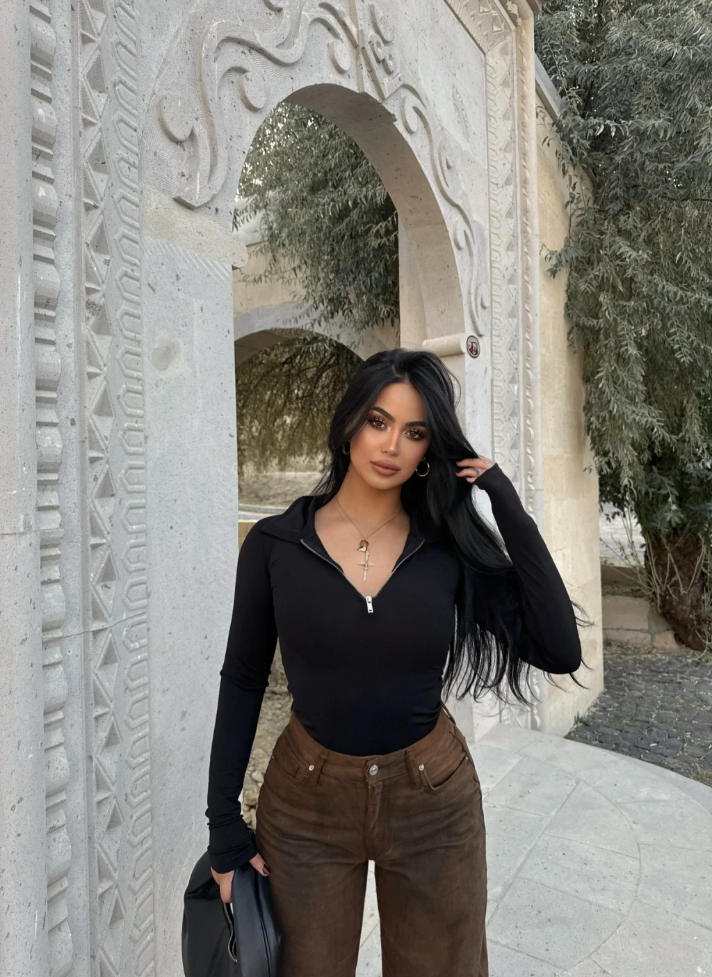 Şıklığı sevenlerin gardırobunda mutlaka bulunması gereken Kırmızı Butik Yaka Fermuarlı Bodysuit, günlük hayatta ve özel davetlerde vazgeçilmez bir parça olmaya aday.