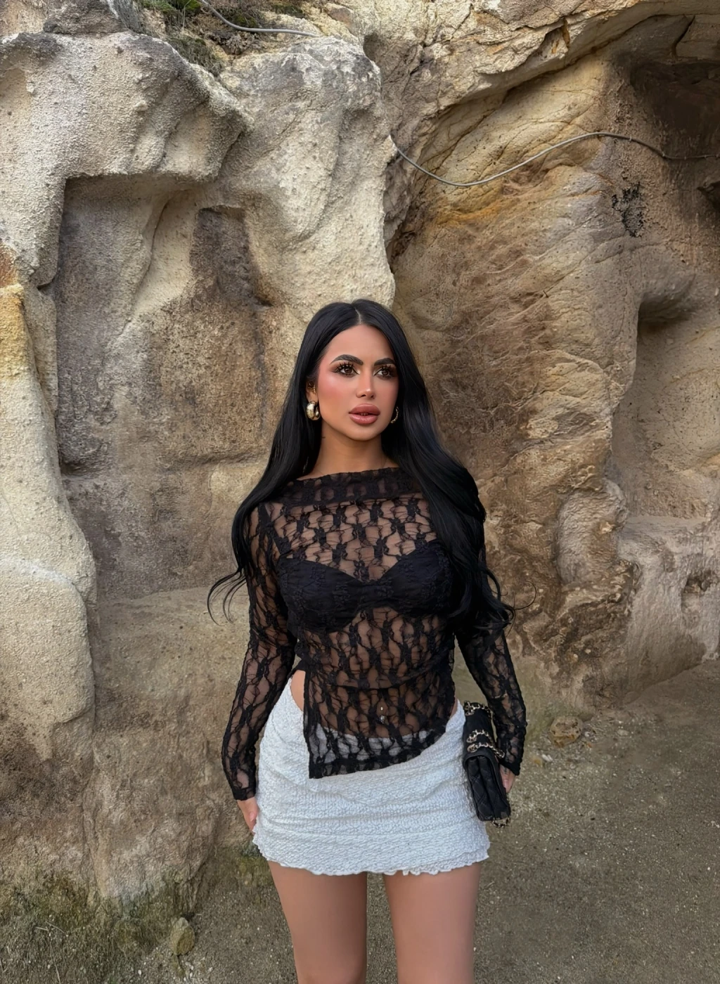 Yan Yırtmaçlı Güpürlü Bluz, şıklığı ve zarafeti bir arada sunar.